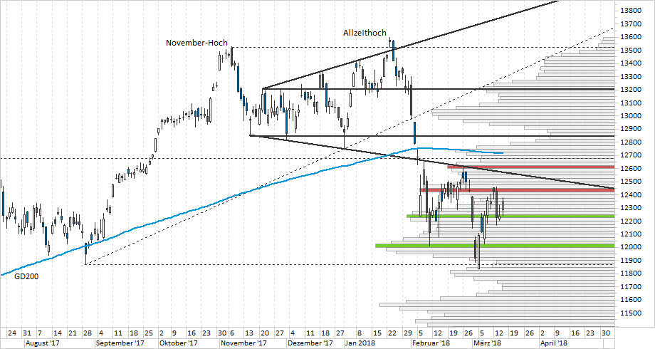 Am gestrigen Donnerstag wagten sich die DAX-Bullen aus der Deckung und brachten ein Plus von immerhin 0,9% über die Ziellinie. Vorher kletterten die Kurse auf ein Tageshoch bei 12.378 Punkten, kamen damit aber erneut nicht über den Widerstand im Bereich von 12.400/12.425 Punkten hinaus. Der heutige Freitag steht nun ganz im Zeichen des großen Verfalls. Das heißt ...