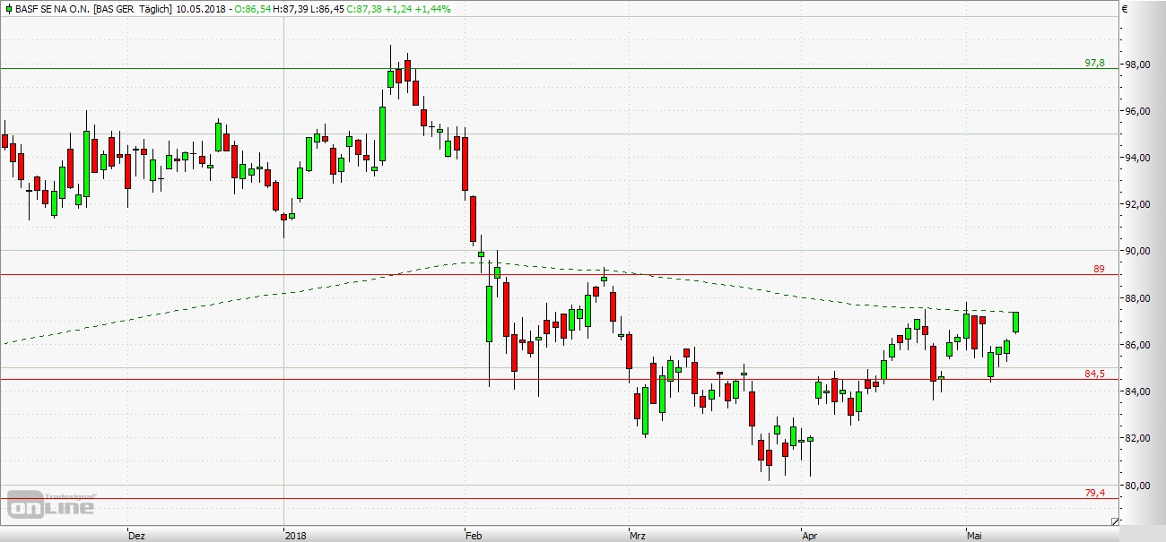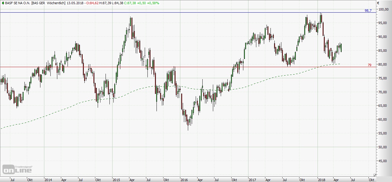 Tief. Seitdem konnte sich BASF innerhalb eines stabilen Aufwärtstrends deutlich erholen, um diesen im Juli 2017 nach unten
