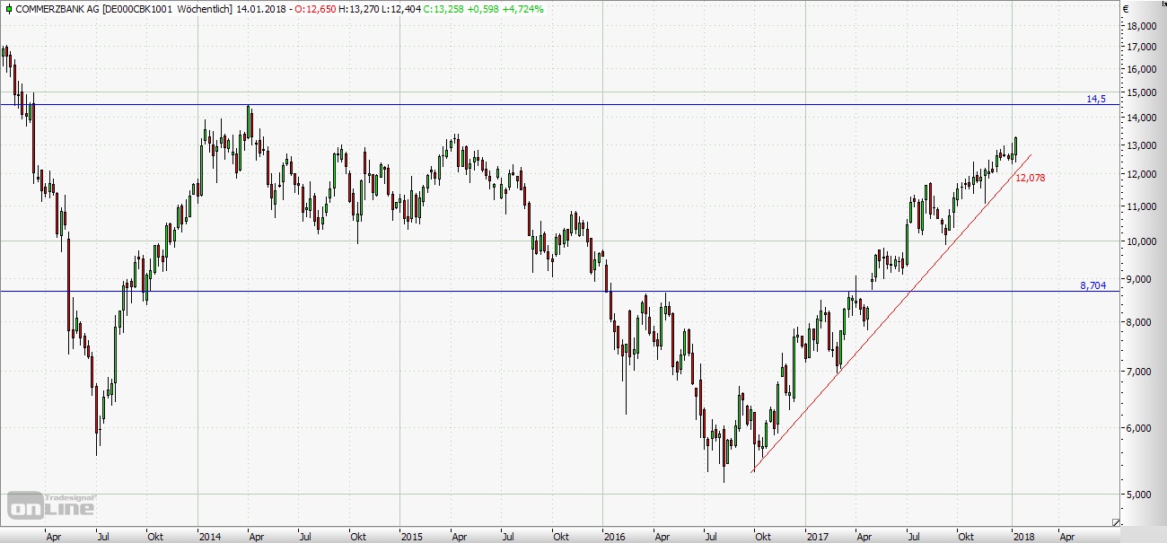 weiteres Aufwärtspotenzial bis 14,00 Euro. Die Long-Szenarien: Startet die Commerzbank leicht im Plus, sollte ein Kauf bei einem