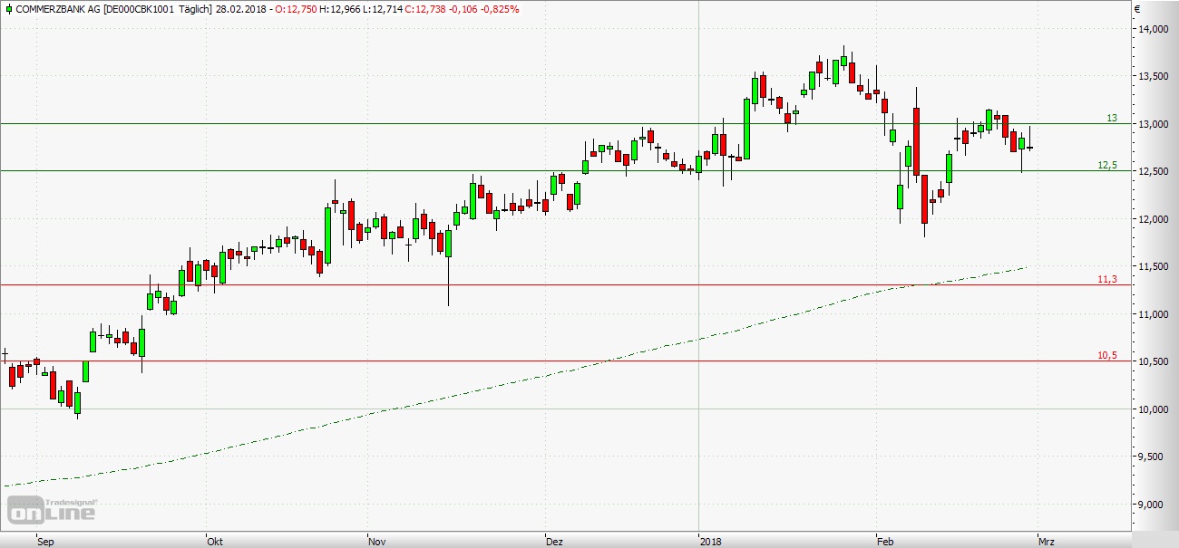 unmittelbar weiteres Abwärtspotenzial eröffnen. Die Long-Szenarien: Startet die Commerzbank leicht im Plus, sollte ein Kauf