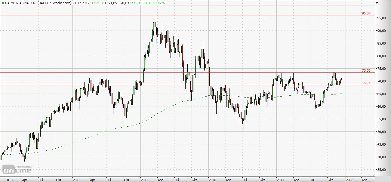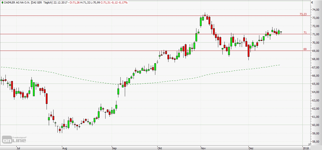 von Daimler wieder bis an den Widerstand bei 73,00 Euro herangeschoben. Von dort prallte der Kurs Anfang November wieder