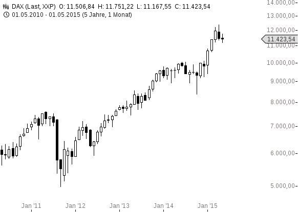 DAX® in Punkten Monatschart: 1 Kerze = 1 Monat (log. Kerzenchartdarstellung)