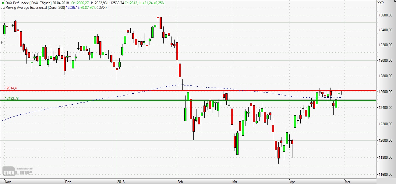 erstmals seit dem 5. Februar wieder oberhalb des trendentscheidenden Widerstands bei 12.600 Punkten. Die Long-Szenarien: