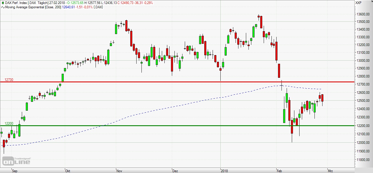 Der DAX gab gestern um 0,29 Prozent nach und beendete den Handel bei 12.491 Punkten. Mit dem Fall unter den 12.500-Punkte-