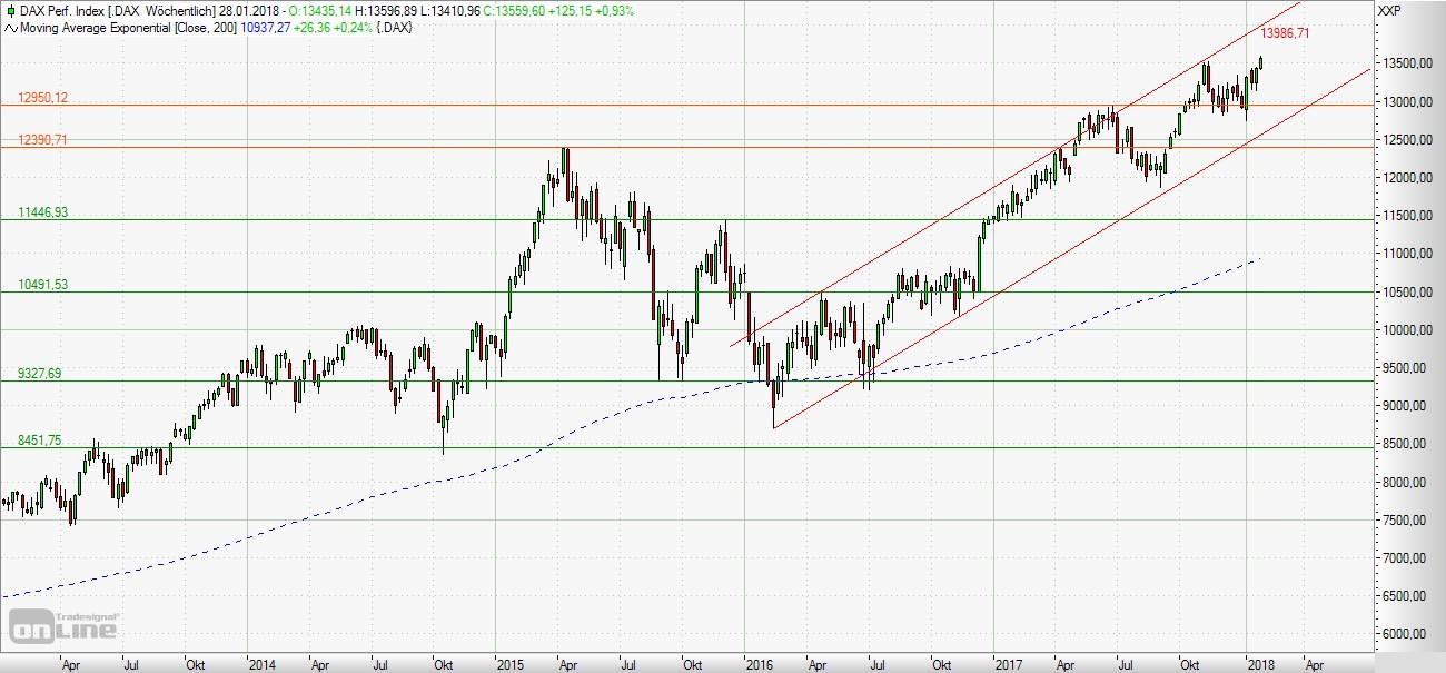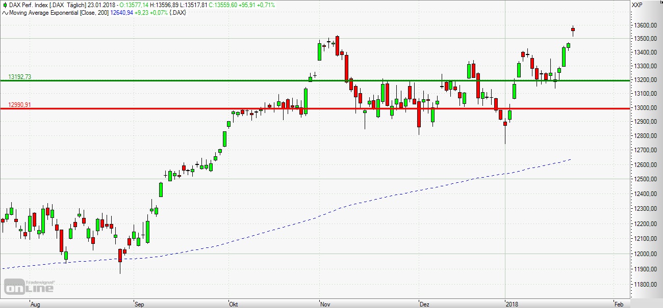 das bisherige historische Rekordhoch auf Schlusskursbasis um 45 Punkte weiter aus. Die Long-Szenarien: Eröffnet der DAX leicht