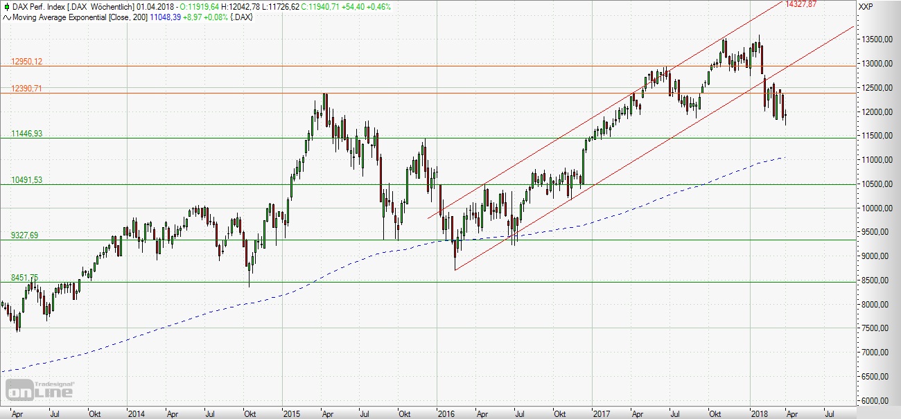 bei einem Abprall von der Unterstützung bei 11.800 Punkten oder aber nach dem Bruch der Schlusskursmarke einsteigen.