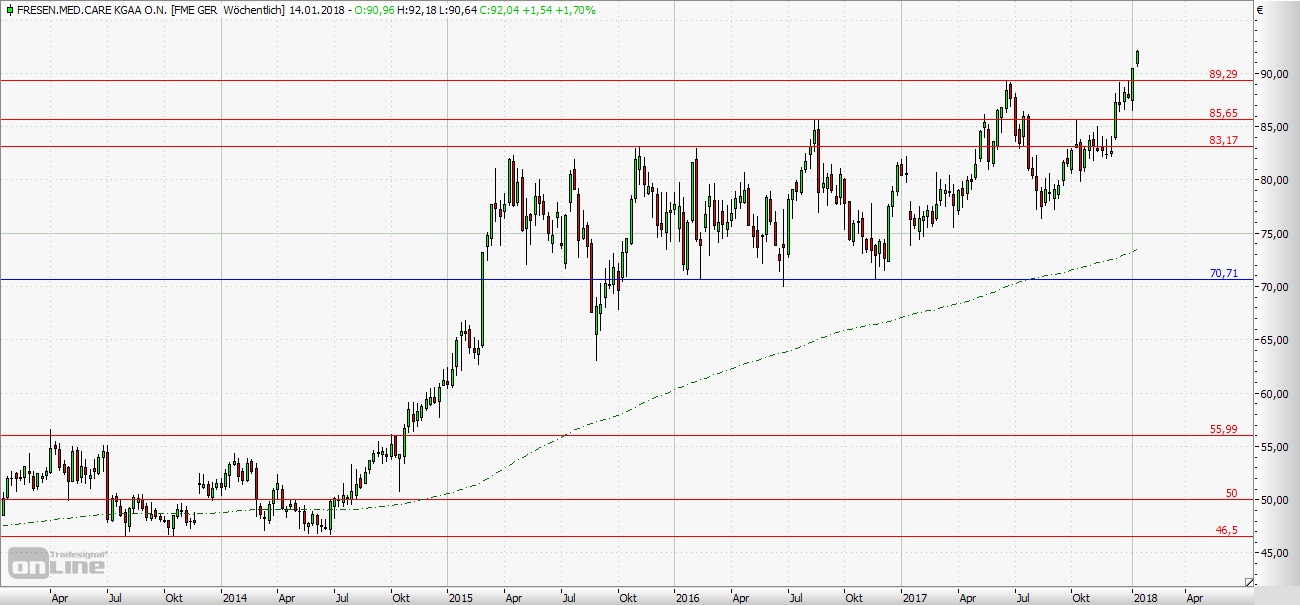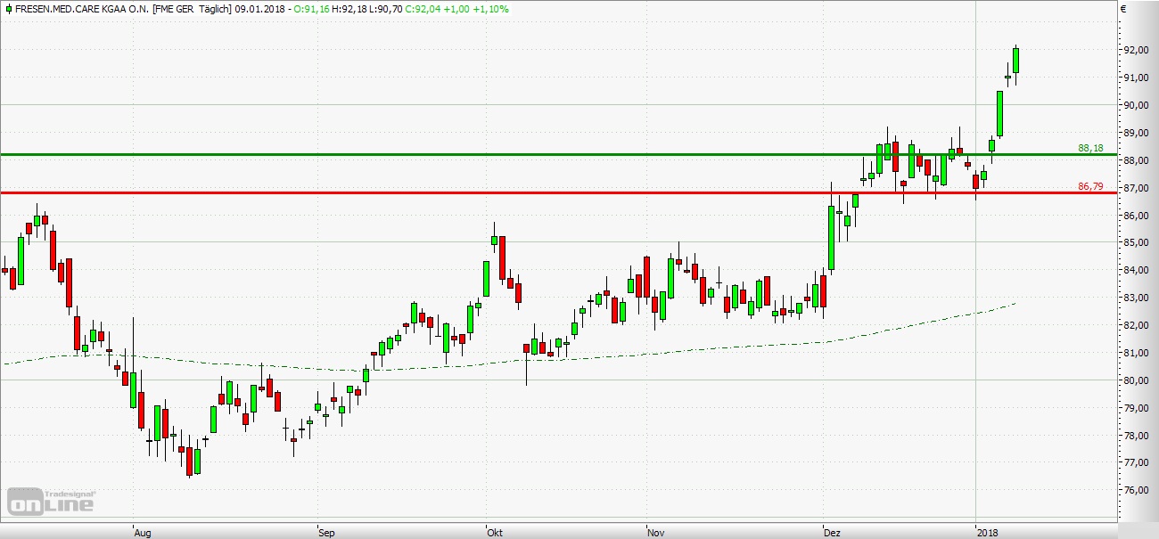 gestrige Rekordkurs bei 92,18 Euro könnte in Kürze sogar noch weiter ausgebaut werden. Die Long-Szenarien: Eröffnet Fresenius