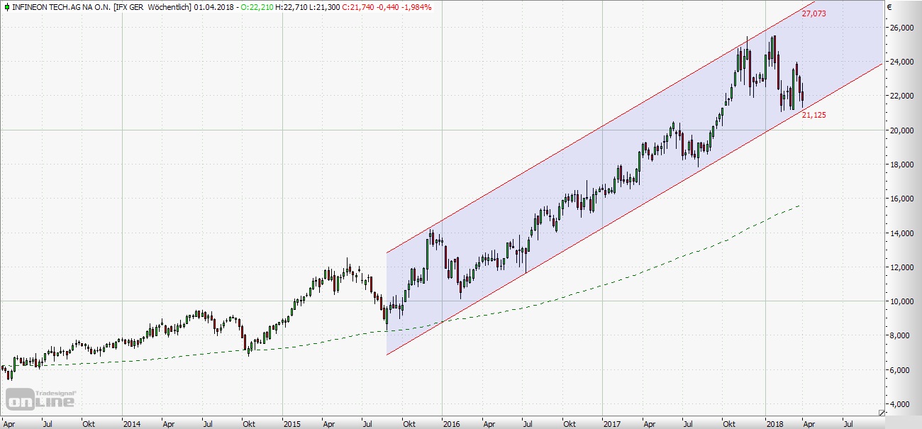 die Aktie in einen mittelfristigen Abwärtstrend über, den Infineon erst Anfang September 2017 wieder beendete. Seitdem ist die
