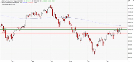 Positionierung entweder bei einem Test der Schlusskurslinie, leicht unterhalb der Unterstützung bei 9.800 Punkten oder aber nach der ersten