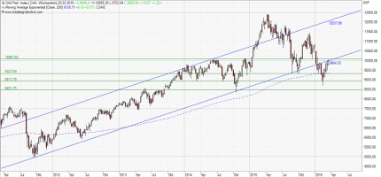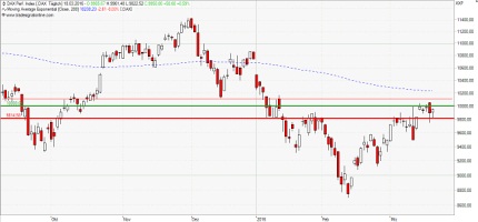 Der DAX legte am Freitag um 0,59 Prozent zu und beendete den Handel bei 9.951 Punkten. Damit bleibt der deutsche Leitindex zunächst in der Schiebezone zwischen 9.800 Punkten und 10.000 Punkten gefangen. Die Long-Szenarien: Eröffnet der DAX leicht im Plus, bietet sich aus charttechnischer Sicht ein Kauf bei einem Rücksetzer auf den Freitagsschlusskurs bei 9.951 Punkten, leicht oberhalb der 10.000-Punkte- Marke oder aber in der ersten Korrektur einer Aufwärtsbewegung an, und zwar rund 40 Prozent unterhalb des letzten Hochs. Wird hingegen im Minus begonnen, könnten Trader durch die eben geschilderte Korrekturvariante, bei einem Abprall von der Unterstützung bei 9.800 Punkten oder aber nach dem Bruch der Schlusskursmarke einsteigen. Aus Sicht der Charttechnik spricht nichts gegen eine Gewinnmitnahme circa 160 Punkte oberhalb des jeweiligen Tagestiefs. Die Short-Szenarien: Startet der Index leicht im Minus, ist eine Positionierung entweder bei einem Test der Schlusskurslinie, leicht unterhalb der Unterstützung bei 9.800 Punkten oder aber nach der ersten Korrektur einer Abwärtsbewegung möglich, und zwar nach dem Bruch des letzten Tiefs. Wird allerdings im Plus eröffnet, wäre eine Platzierung durch die gerade beschriebene Korrekturvariante, leicht unterhalb des 10.000-Punkte-Widerstands oder nach dem Bruch des Schlusskursniveaus denkbar. Der Zielbereich aus Sicht der Charttechnik läge circa 160 Punkte unterhalb des jeweiligen Tageshochs. Zur Absicherung aller Trades käme ein Stopp in Höhe von mindestens 40 Punkten in Frage, bei Short-Trades ober- und bei Long-Trades unterhalb des Einstiegs.