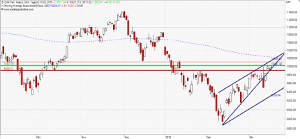 bei einem Abprall von der Unterstützung bei 9.899 Punkten oder aber nach dem Bruch der Schlusskursmarke einsteigen. Aus