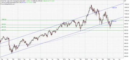 den Vortagesschlusskurs bei 9.892 Punkten, leicht oberhalb der runden Zahl bei 10.000 Punkten oder aber in der ersten Korrektur einer