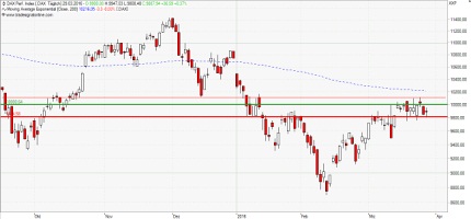 entweder bei einem Test der Schlusskurslinie, leicht unterhalb der Unterstützung bei 9.750 Punkten oder aber nach der ersten Korrektur