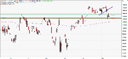 Der Zielbereich aus Sicht der Charttechnik läge circa 212 Punkte unterhalb des jeweiligen Tageshochs. Zur Absicherung aller Trades