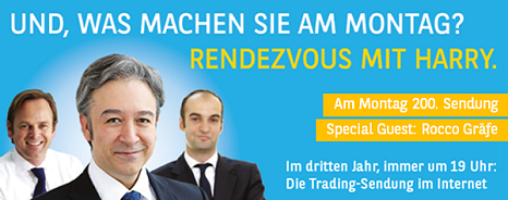 Die nächste Trading-Sendung findet am Montag, 8. Mai, um 19 Uhr statt. Kostenlose Anmeldung über www.rendezvousmitharry.de.
