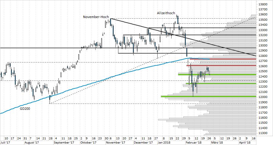 Der deutsche Leitindex knickte gestern kurz vor Handelsschluss erneut ein und konnte so das späte Tageshoch bei 12.516 Punkten nicht in den Feierabend retten. Stattdessen musste der DAX einen Verlust von 0,4% verbuchen, womit der Monat Februar mit einem deutlichen Minus von 5,7% endete. Per Saldo liegt der DAX auf Jahressicht nun mit -3,7% hinten, was den Start in den März nicht einfacher macht...