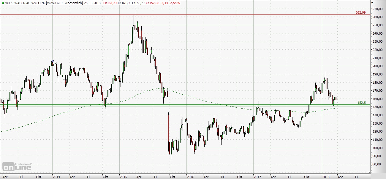 zwischen 162,40 Euro und 139,55 Euro dramatisch zuspitzte. Erst bei 86,36 Euro markierte Volkswagen im Oktober 2015 einen zyklischen