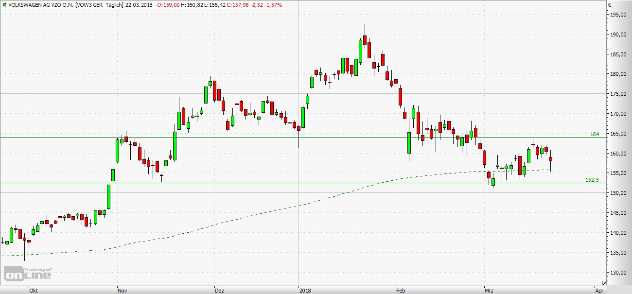 Rücksetzer auf 157,98 Euro eröffnet sich kurzfristig weiteres Abwärtspotenzial. Die Long-Szenarien: Eröffnet Volkswagen leicht im